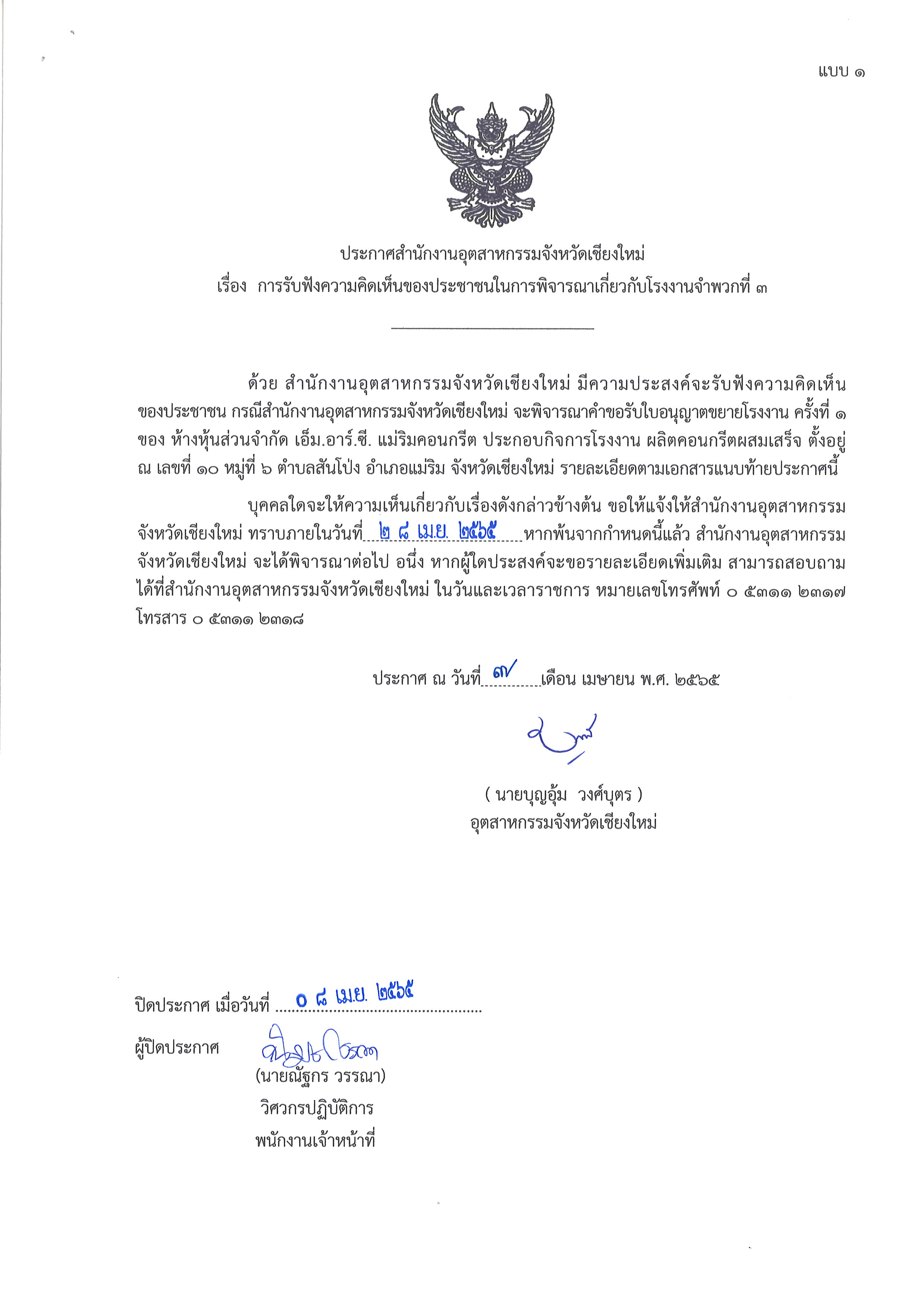 การรับฟังความคิดเห็นของประชาชนในการพิจารณาเกี่ยวกับโรงงานจำพวกที่ 3