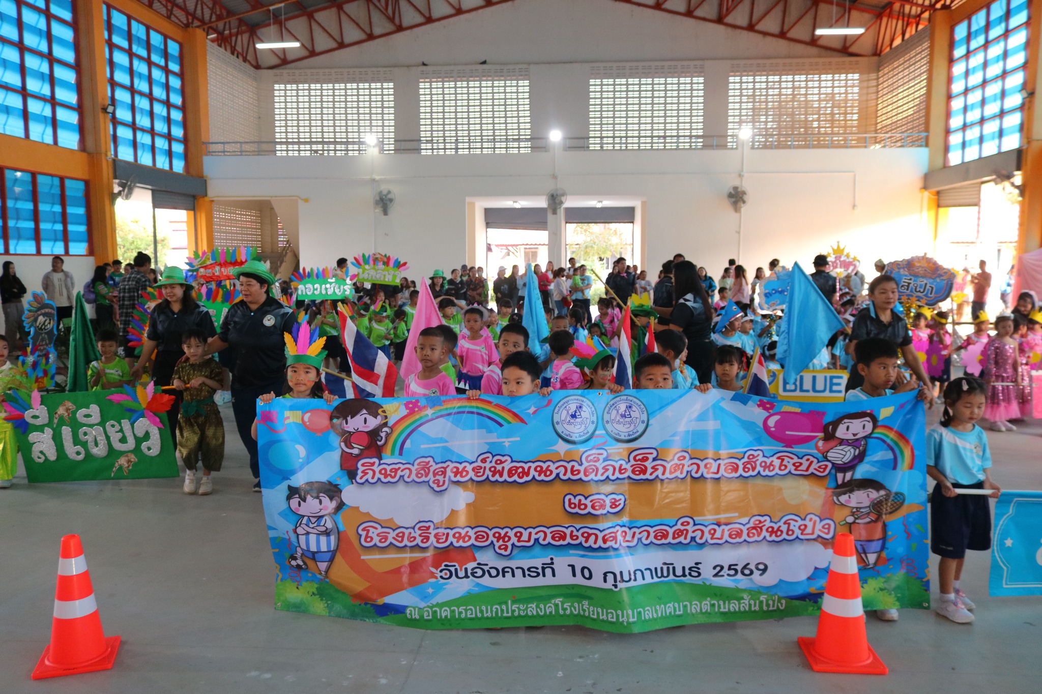 เทศบาลตำบลสันโป่ง ได้จัดกิจกรรมงานกีฬาสีศูนย์พัฒนาเด็กเล็กตำบลสันโป่งและโรงเรียนอนุบาลเทศบาล ในวันที่ 10 กุมภาพันธ์ 2569 ณ อาคารเอนกประสงค์ โรงเรียนอนุบาลเทศบาลตำบลสันโป่ง โดย พงศ์ชยรัช บัวบุญเลิศ นายกเทศมนตรีตำบลสันโป่ง เป็นประธานเปิดโครงการฯ โดยมีวัตถุประสงค์เพื่อมุ่งเน้นให้เด็กได้ร่วมกิจกรรมระหว่างกลุ่มเพื่อน, ครูผู้ดูแลเด็ก, และผู้ปกครอง เป็นการปลูกฝังให้เด็กมีคุณธรรมอันพึงประสงค์ รู้จักความมีน้ำใจเป็นนักกีฬา รู้แพ้ รู้ชนะ รู้อภัย ในการอยู่ร่วมกันในสังคมได้เป็นอย่างดีและมีความสุข รวมถึงเพื่อพัฒนาเด็กวัย 2 - 5 ปี ให้มีความพร้อมด้านร่างกาย อารมณ์ และสังคม อีกทั้งเป็นการกระชับความสัมพันธ์ของครอบครัวระหว่างโรงเรียนและชุมชน