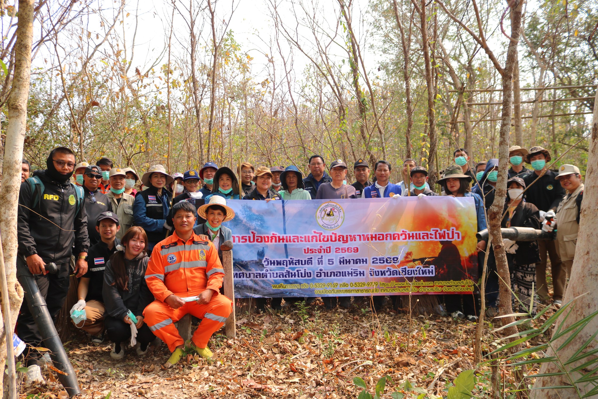 โครงการป้องกันและแก้ไขปัญหาหมอกควันและไฟป่า ประจำปีงบประมาณ พ.ศ.2569 เทศบาลตำบลสันโป่ง นำโดย นายพงศ์ชยรัช บัวบุญเลิศ นายกเทศมนตรีตำบลสันโป่ง พร้อมด้วยสมาชิกสภาเทศบาล กำนัน ผู้ใหญ่บ้าน หัวหน้าส่วนราชการ พนักงานเทศบาล