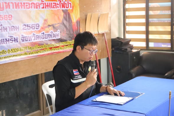 การบรรยาย เรื่อง ข้อสั่งการนโยบายรัฐบาลและประกาศจังหวัดเชียงใหม่ในการป้องกันและแก้ไขปัญหาหมอกควันและไฟป่า โดย วิทยากรจาก ฝ่ายความมั่นคง อำเภอแม่ริม
