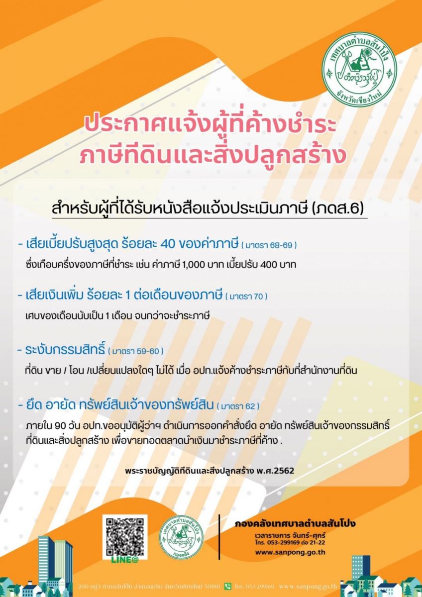 ประกาศแจ้งผู้ค้างชำระภาษีที่ดินและสิ่งปลูกสร้าง