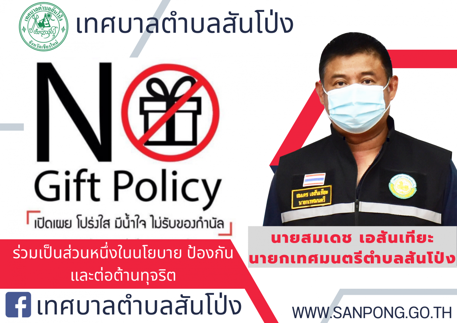 ประกาศเทศบาลตำบลสันโป่ง เรื่อง นโยบายไม่รับของขวัญ (No Gift Policy)