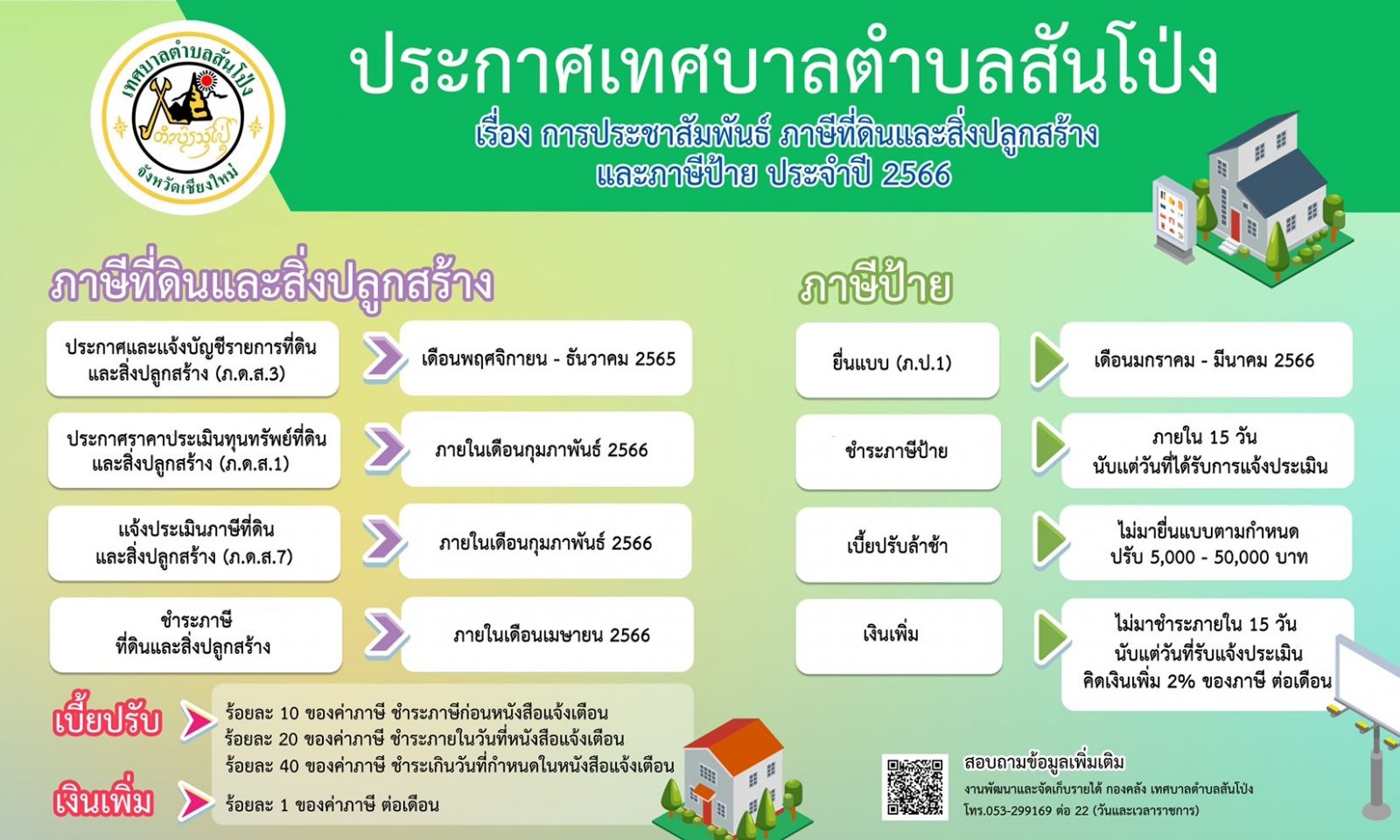 การขยายระยะเวลาดำเนินการจัดเก็บภาษีที่ดินเเละสิ่งปลูกสร้าง ประจำปี พ.ศ. 2566