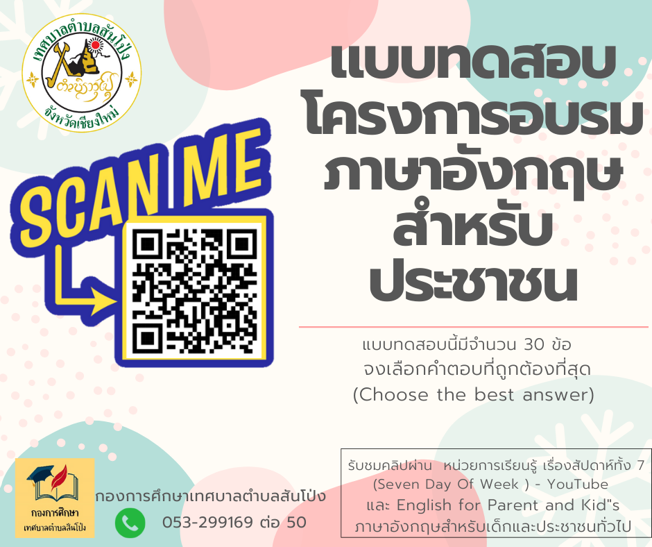ขอเชิญร่วมทำแบบทดสอบก่อนเรียน โครงการอบรมภาษาอังกฤษสำหรับประชาชน