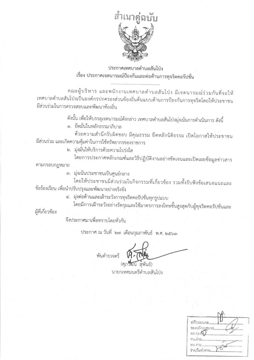 ประกาศเจตนารมณ์ป้องกันและต่อต้านการทุจริตคอรัปชั่น 2563